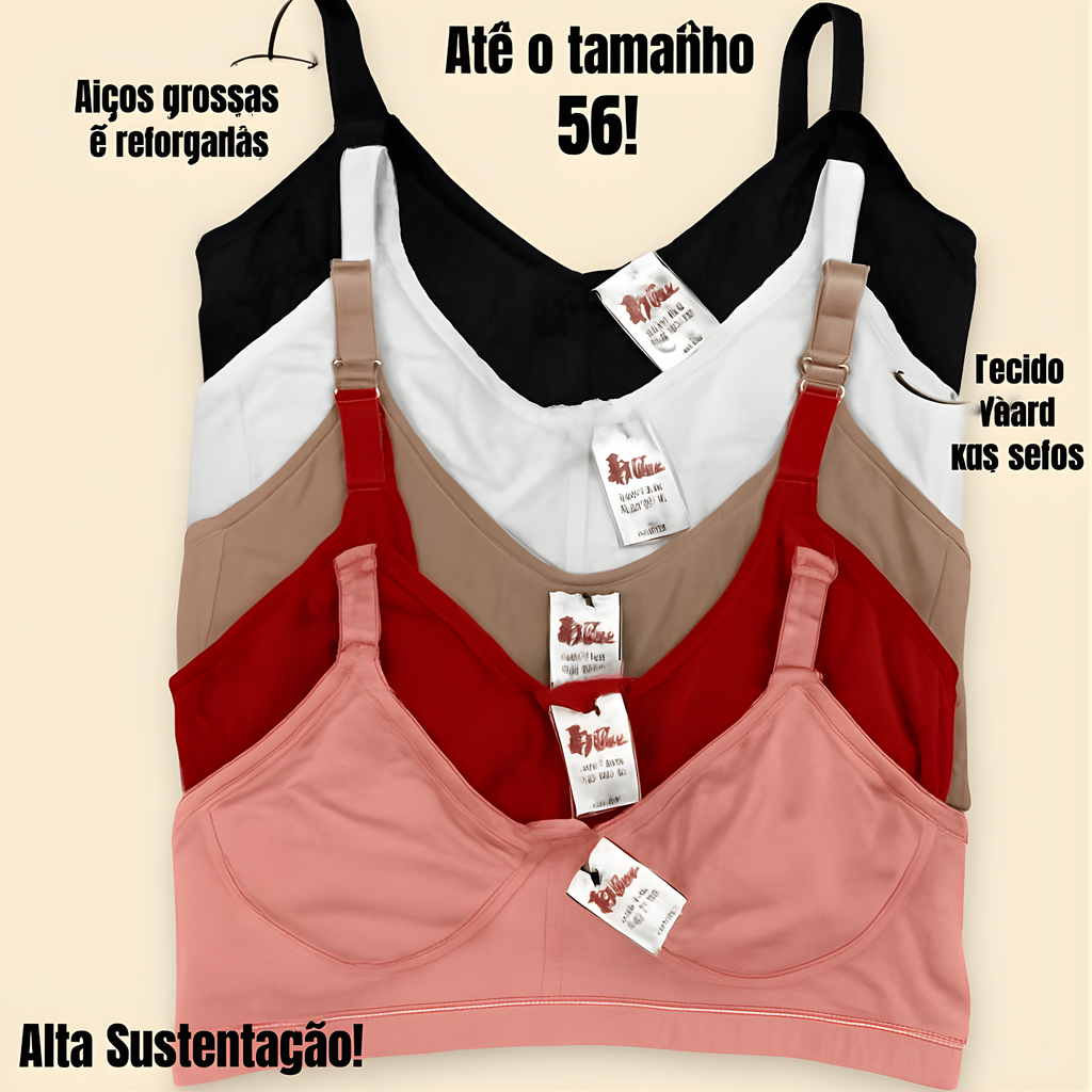 Somos a Bella Flor Oficial, conquistamos com o foco de levar beleza e conforto em nossos produtos, com qualidade e o melhor preço do mercado! Este é o nosso sutiã de alta sustentação plus size! Foi projetado para oferecer o máximo de conforto e suporte. Feito com tecido duplo nos seios, proporciona uma sustentação firme e eficaz, mantendo tudo no lugar ou no dia todo. As alçadas reforçadas são largas e convenientes, garantindo uma distribuição uniforme do peso e alívio da pressão nos ombros. Ideal para quem busca suporte extra sem comprometer o estilo e o conforto. CARACTERÍSTICAS: Tecido Duplo nos Seios: Proporciona maior firmeza e suporte, ideal para quem necessita de uma sustentação extra. Alças Reforçadas: Largas e luxuosas, oferecendo conforto adicional e aliviando a pressão nos ombros. Design Anatômico: Molda-se ao corpo, oferecendo suporte sem causar desconforto. Material Respirável: Feito de tecidos que permitem a ventilação, mantendo a pele seca e confortável. Disponibilidade de Tamanhos: Ampla gama de tamanhos para atender diferentes necessidades de corpos plus size. EXTREMAMENTE CONFORTÁVEL (Microfibra) PARA USO EM TODOS OS MOMENTOS! Referência de medidas: M - (48 - 50) 100 cm até 104cm G - (50 - 52) 105cm até 110cm GG - (52 - 54) 111cm até 116cm EG - (54 - 56) 117cm até 128cm COMPOSIÇÃO 83% Poliamida 17% Elastano